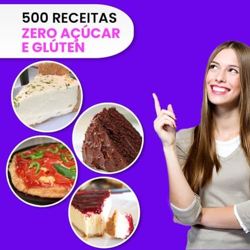 Coma de tudo sem culpa, sem açúcar e sem glúten. São 500 receitas selecionadas para você.
